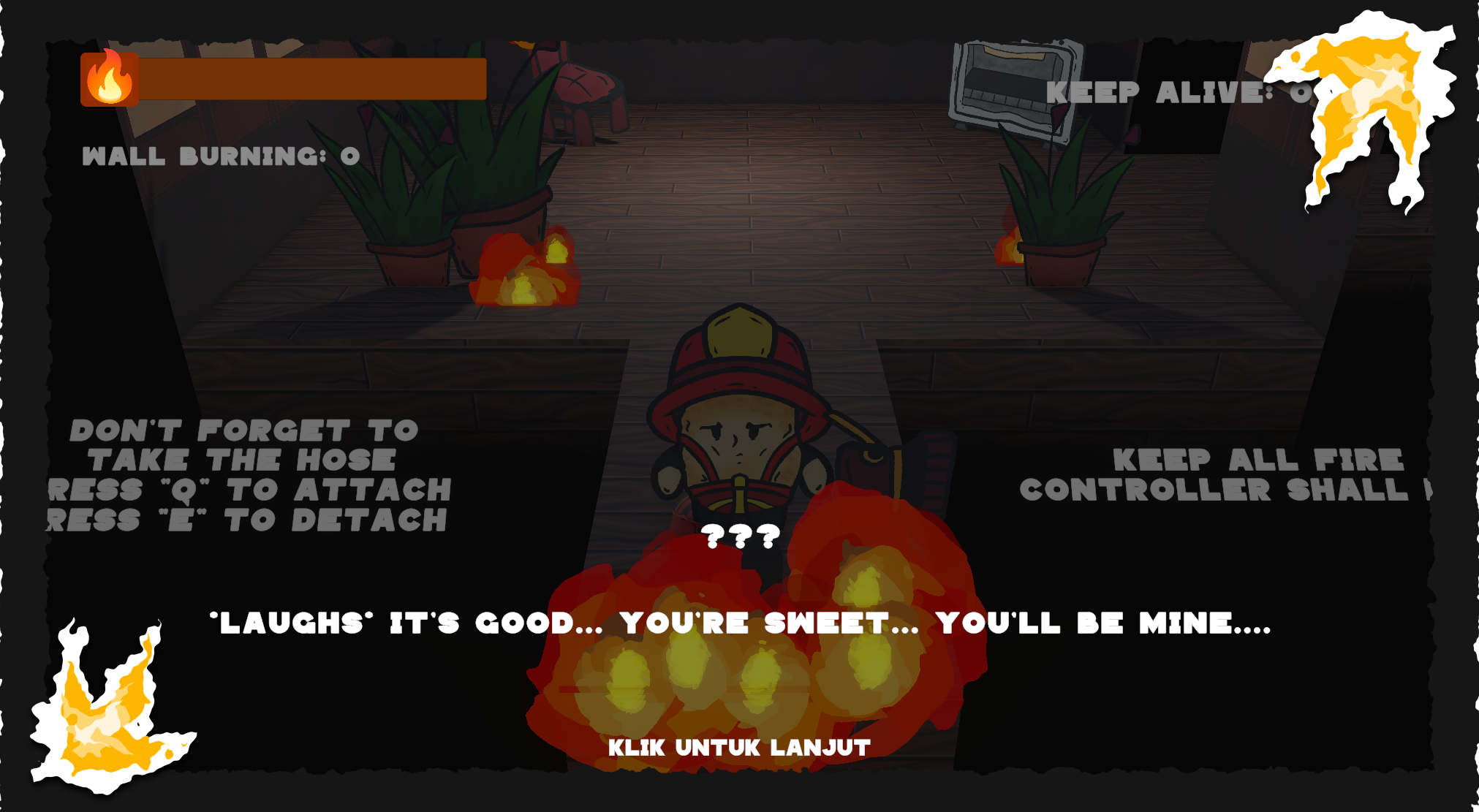 Something Wrong With This Fire merupakan game 2.5D dimana kamu harus bisa bertahan hidup dari panasnya api yang bergejolak di tempat yang misterius ini. Di Game ini kamu akan bermain sebagai Pota seorang kentang dari kota sayuran yang berprofesi sebagai pemadam kebakaran. Namun, saat kamu sadar kamu sudah berada di rumah yang misterius ini.